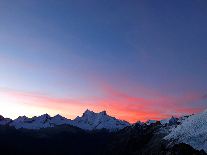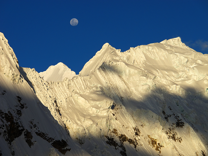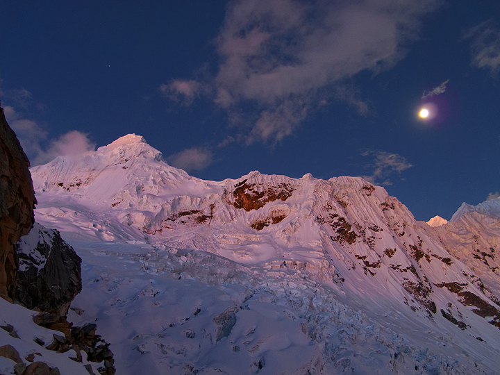 It was a gorgeous sunset complete with full moon rising. More views of Palcaraju from Tocllaraju high camp. |