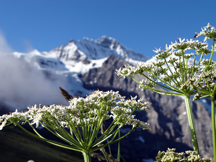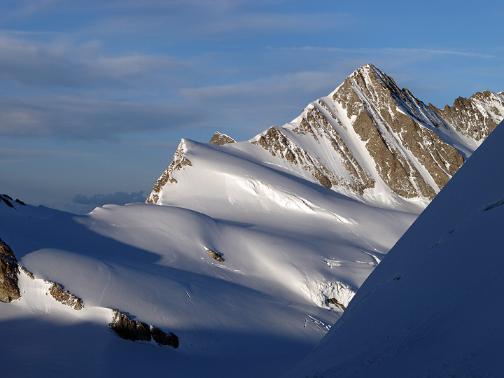 Evening light on the Gross Fiescherhorn, as seen from the hut. |