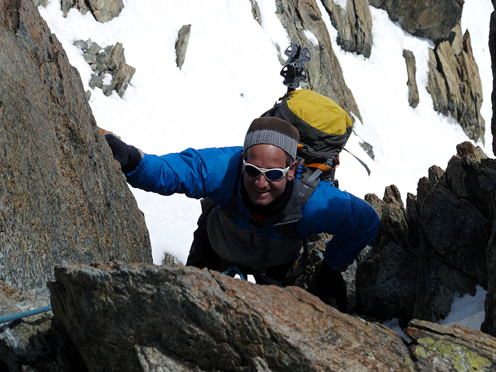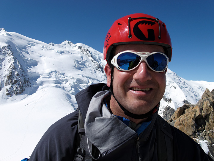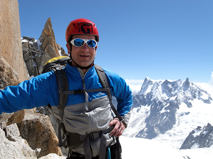 Matt, enjoying the well-deserved perfect weather we had on the Arête des Cosmiques. |