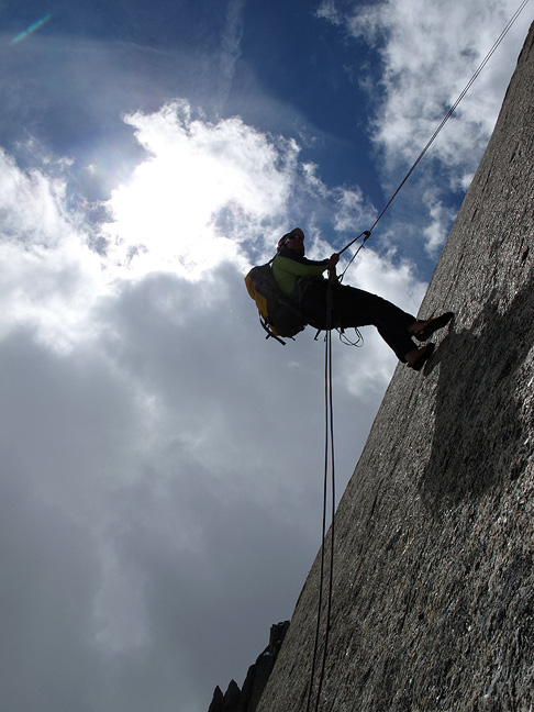 Descent via rappel. |