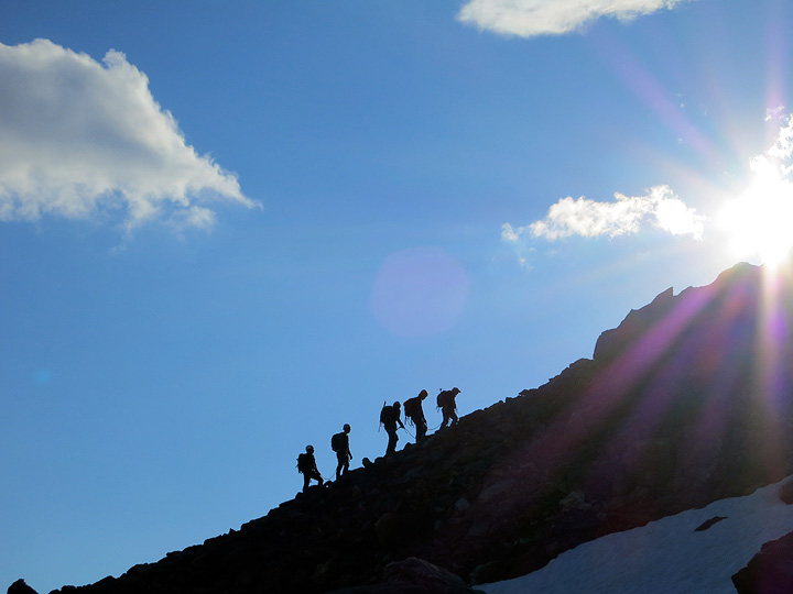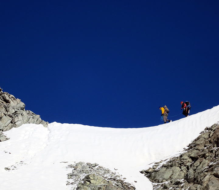 Climbers crossing above us as we approach the ridge. |