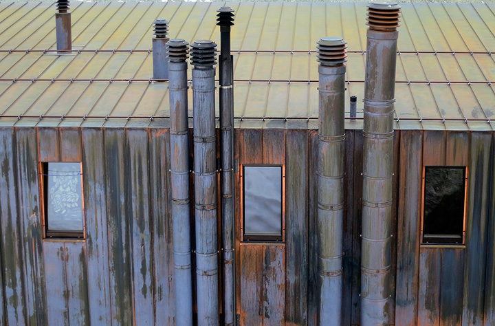 Kathy was fascinated by the apparently copper siding and the many vents of the hut, weathering beautifully in the sun and rain. |