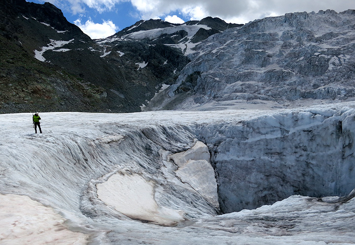 This "moulin", or melt-water draining feature, looked like a little dimple from the hut. Up close, it's rather more impressive! |