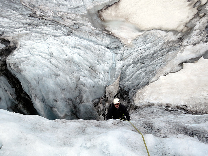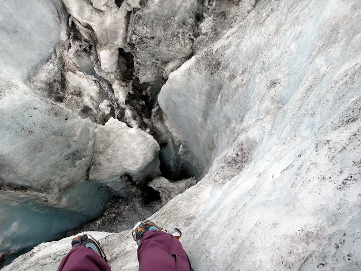 The meltwater drills down a long way here, perhaps to the bedrock. Tight rope, Ken!!! |