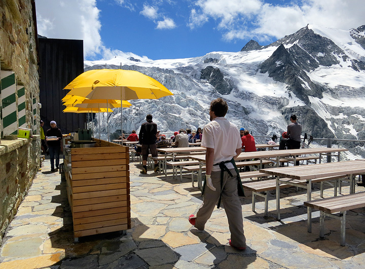 The terrace of the hut looked very different a few days later, on a sunny Saturday lunchtime! But I anticipate... |