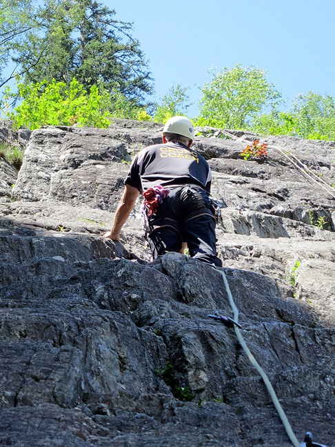 We set up a top-rope anchor and took turns lowering in and climbing out, just for grins! |
