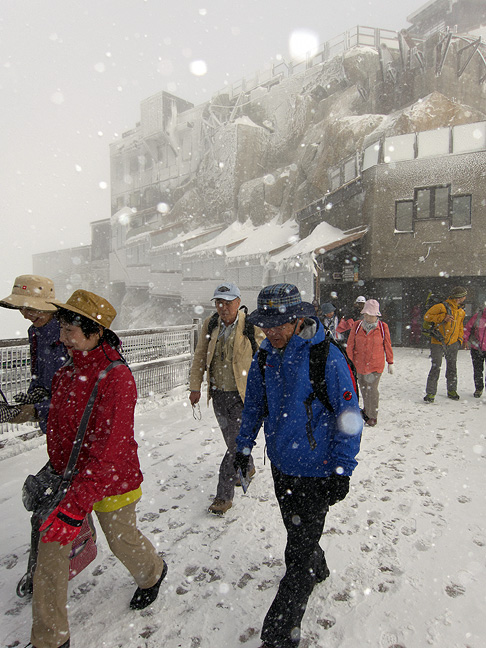We joined the other climbers milling and stalling, waiting for a decision to become obvious. |