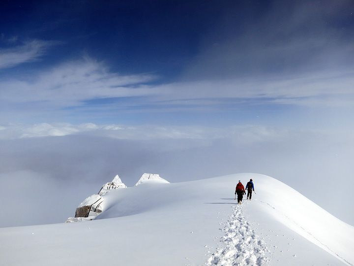 A party follows us down the ridge. The wind was blowing fairly hard, but soon calmed down. |