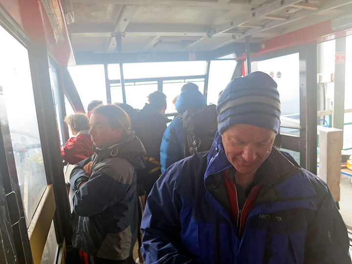 This is how conditions looked upon arrival at the Aiguille du Midi top station, however the forecast called for improvement up high during the morning, and it looked like it was going to burn off.... |