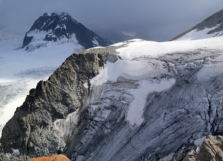 Stormy weather over the peaks, making for dramatic views from the Vignettes hut. |