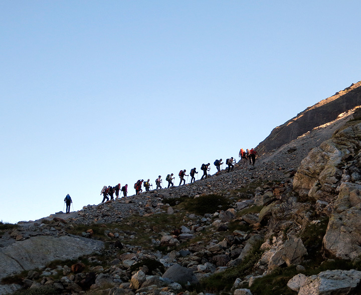 A bit of steepish snow and loose rocks to negotiate en route to the Vignettes hut. |