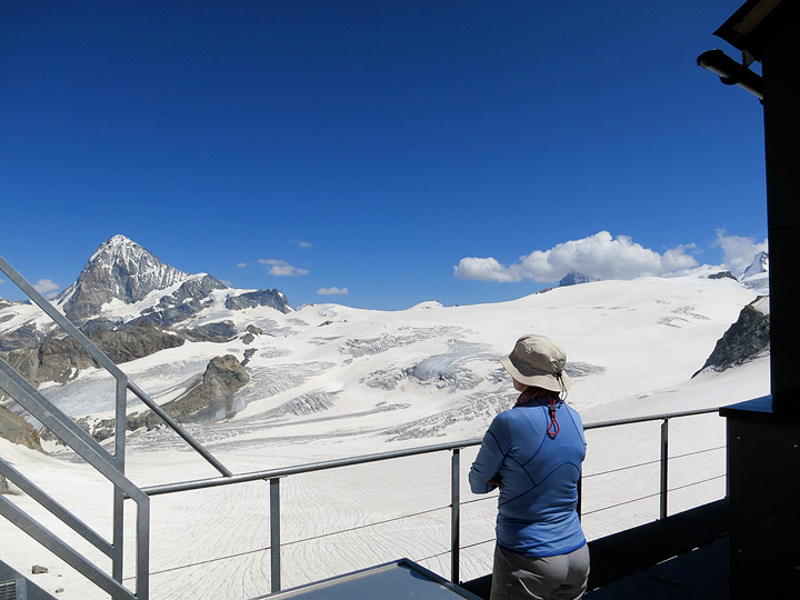 As it happened however the sun came back out to welcome us into Zmutt. It was hot and tropical by the time we got to Zermatt, around noon. |