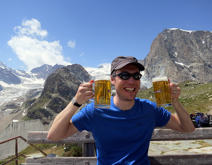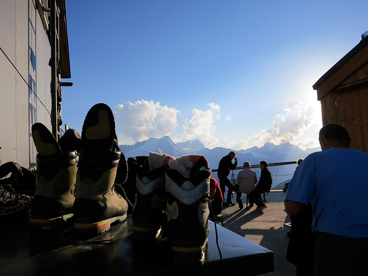 Apéritif hour on the terrace of the Bertol hut. |