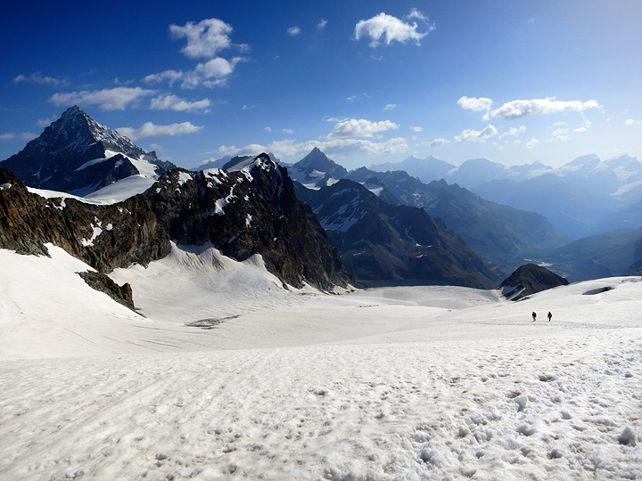 Our route this day takes us over the summit of the Tête Blanche. Dent d'Hérens in the background here. |