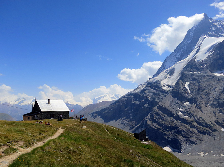 At the hut at last! The Matterhorn is flying its "flag" of cloud today, portending a change in the weather. |