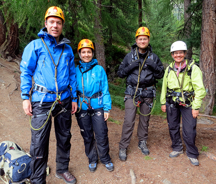 A small post-script: as we were in town early in the day, we decided to take in a quick tour on the Gorner Gorge Adventure! Suited up with our via ferrata kit for the departure. |