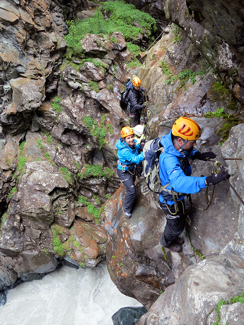 The rain was back as we clambered above the raging waters of the gorge. An exciting way to end a fun week. Thanks to all the crew! |