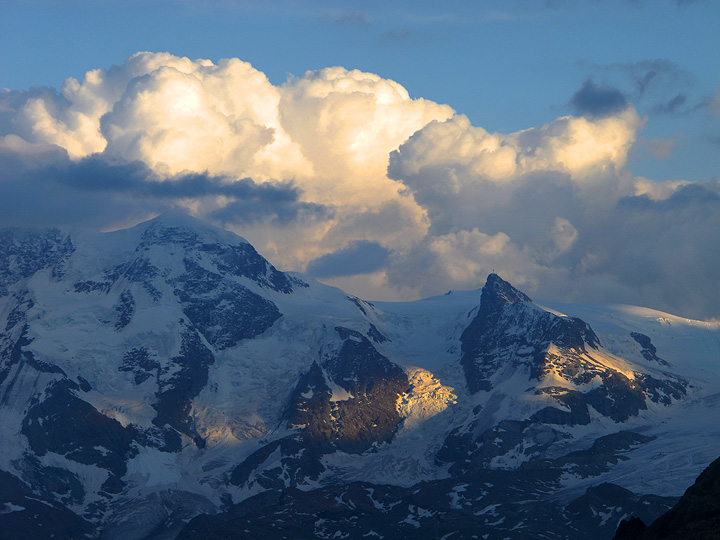 The Breithorn and Klein Matterhorn at sunset from the hut. |