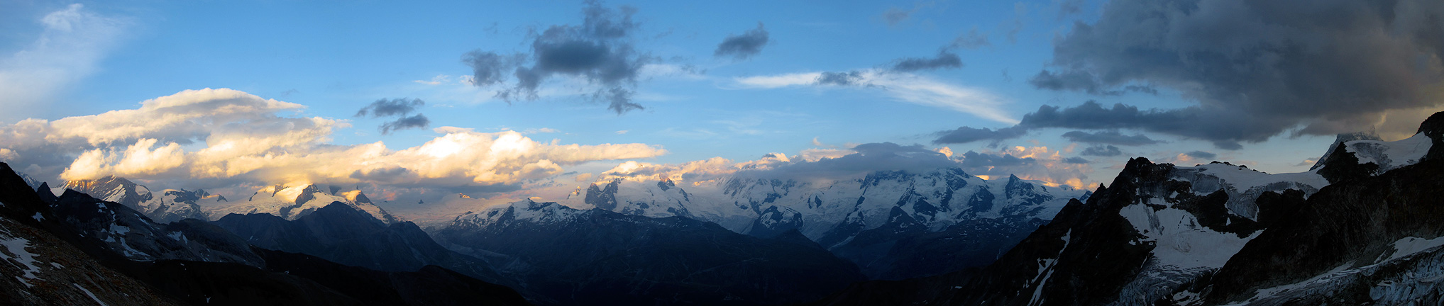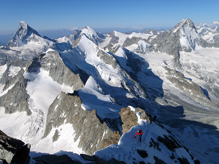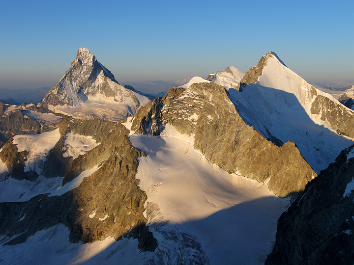 The Matterhorn, Wellenkuppe, Dent d'Hérens, and the Obergabelhorn. |