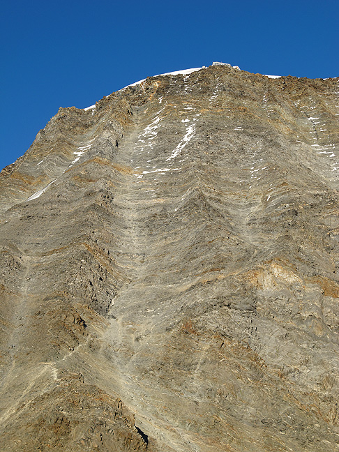 A view of the route from the 4300 meter level to the summit, at 4810 meters. Mouse over for the line. |