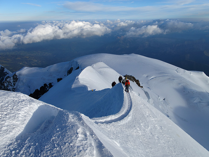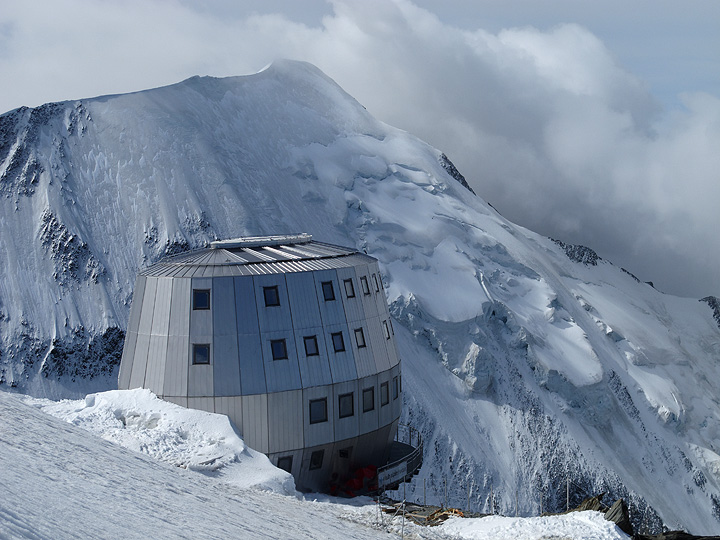 Several hours later, we pass by the newly constructed, but not yet open, Gouter hut. We had a reservation at the old Gouter hut, but finding ourselves there by 11 in the morning, we decided to head all the way down to Chamonix for the night. |