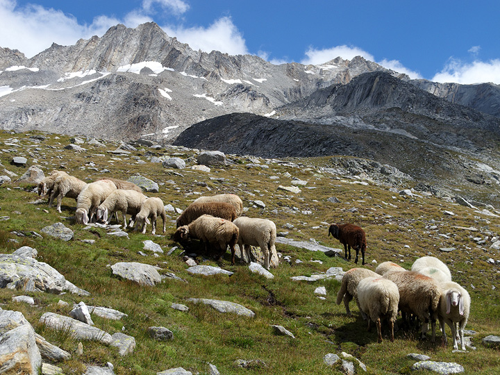 "Wildlife" on the trail to the hut. The Portjenhorn is the rocky peak on the left. |