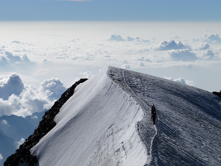 The final part of the route traverses a beautiful snow arête. |