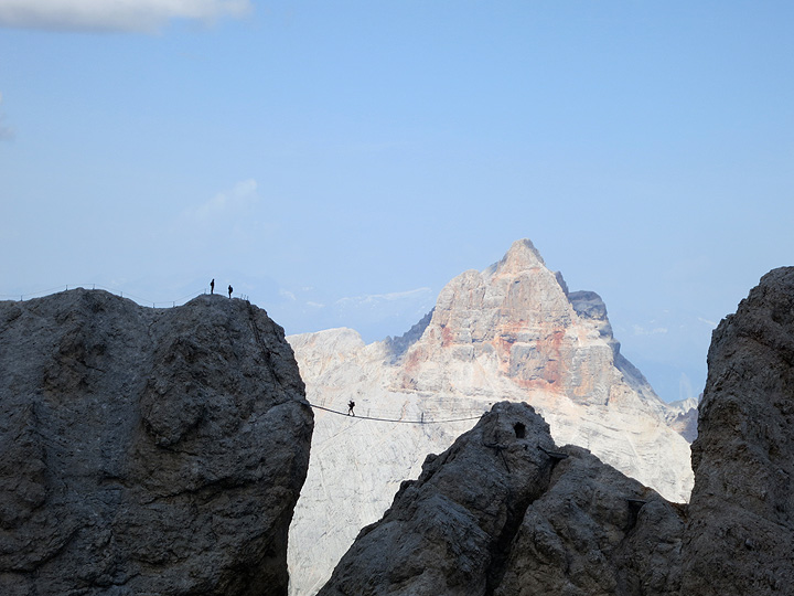 We get a good view across at the longest bridge in the Dolomites, on the Ivano Dibona route, which we will do the next day. |