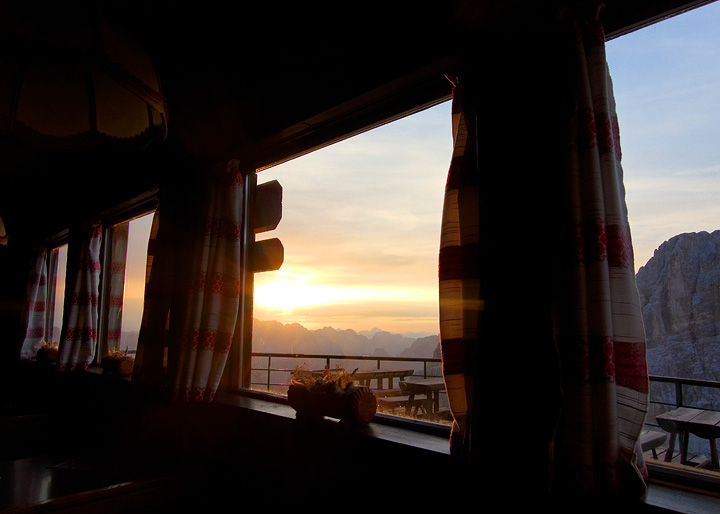 Sunrise at the Rifugio Lorenzi. |