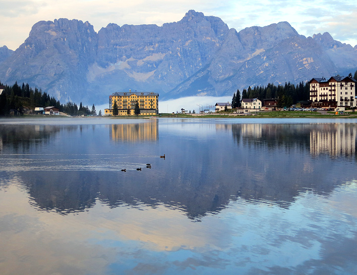 After our long day, we took time for a late morning on day 4. Ducks at sunrise on Lago Misurina. |