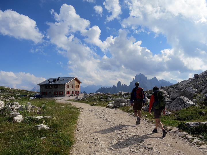 The easy tourist path leads by the Lavaredo hut. |