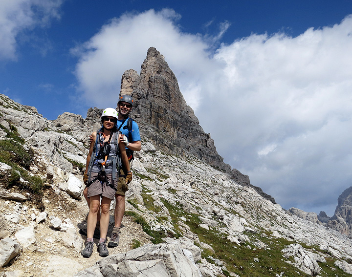 Ten long years ago John and Lori came to the Alps and did some climbing with Kathy. They were back this summer, this time to try out some of the world famous "via ferrate" in the Dolomites. |