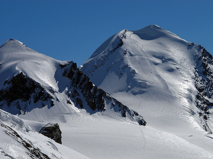 Looking back towards the Dufour from the summit of the Nordend. Mouse over to see the route. |