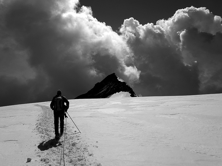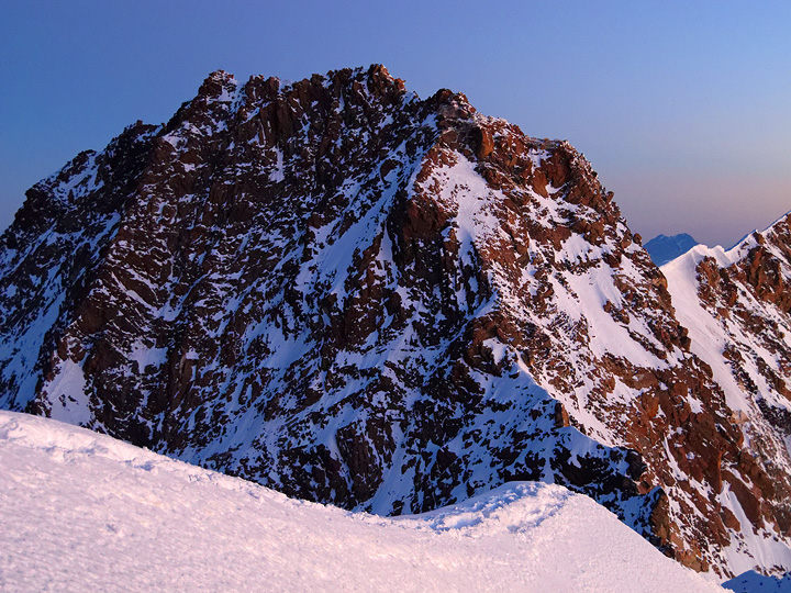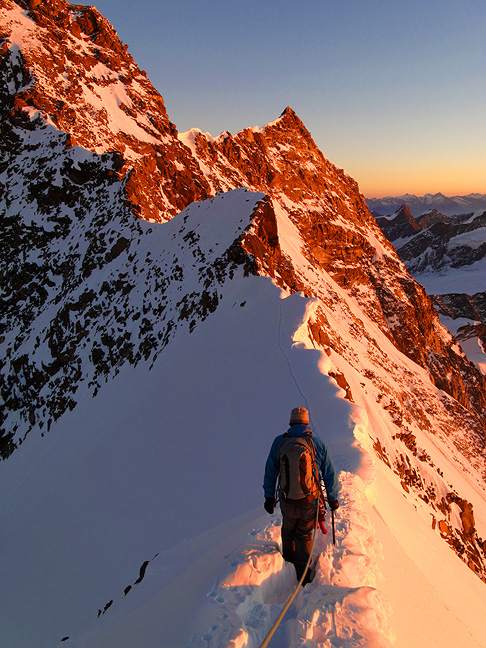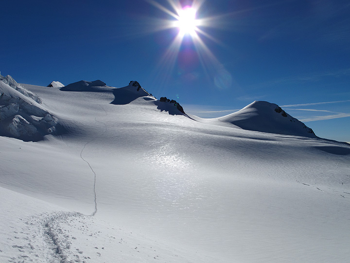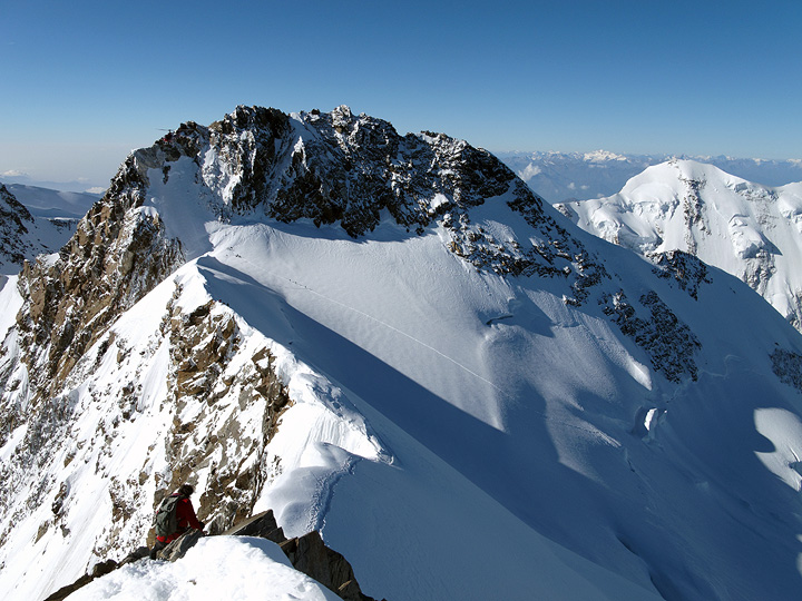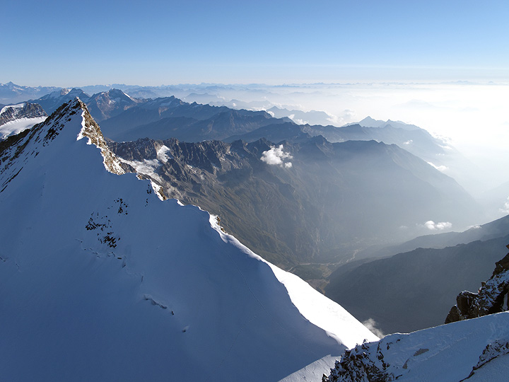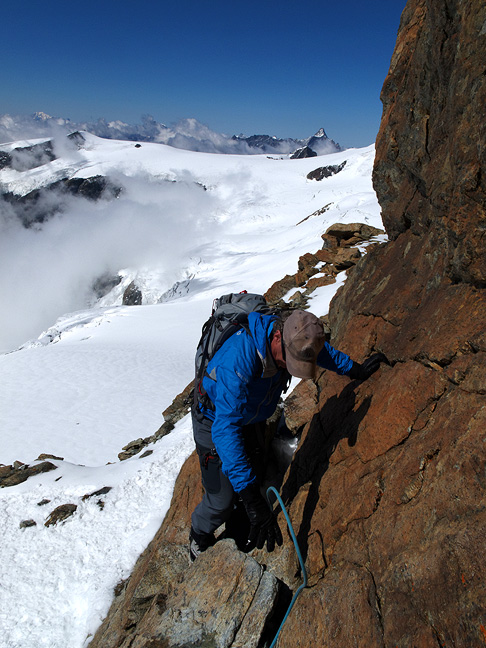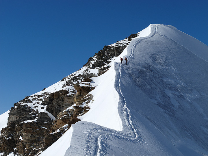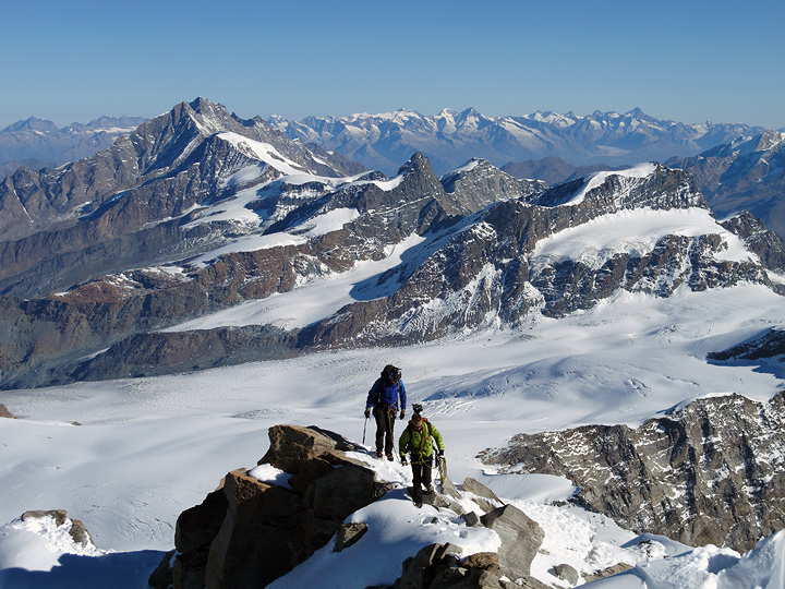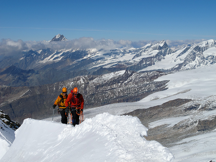 On the connecting ridge between the Zumsteinspitze and the Dufourspitze. |