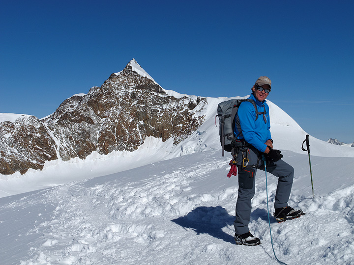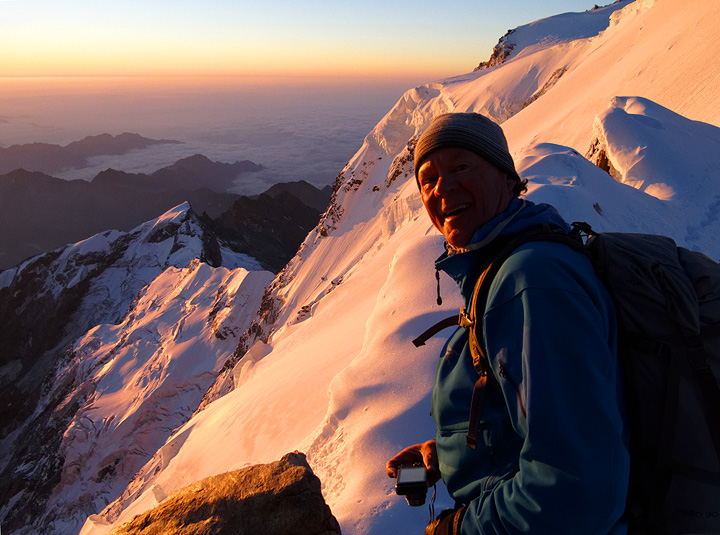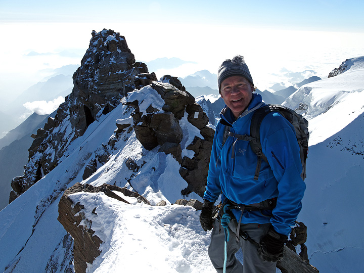 Grant on the summit of Piramide Vincent, at 4215m the first of the day's collection. |