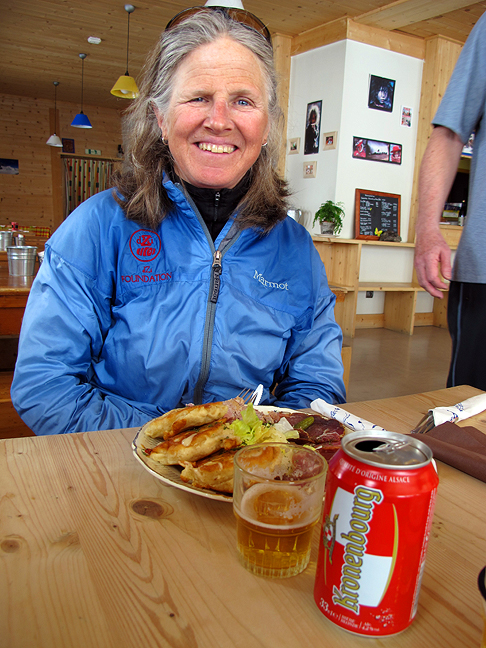 And a well-earned reward! Not sure if you can see how soaking wet Kathy's windshirt is. Never mind, all is well now. |