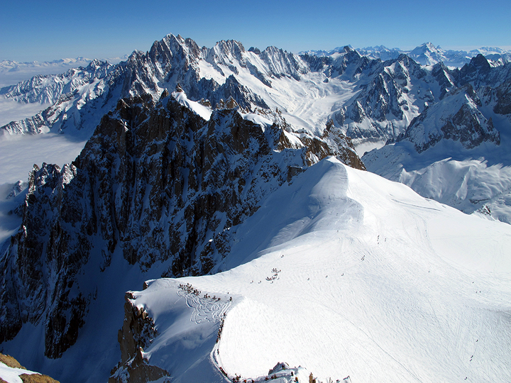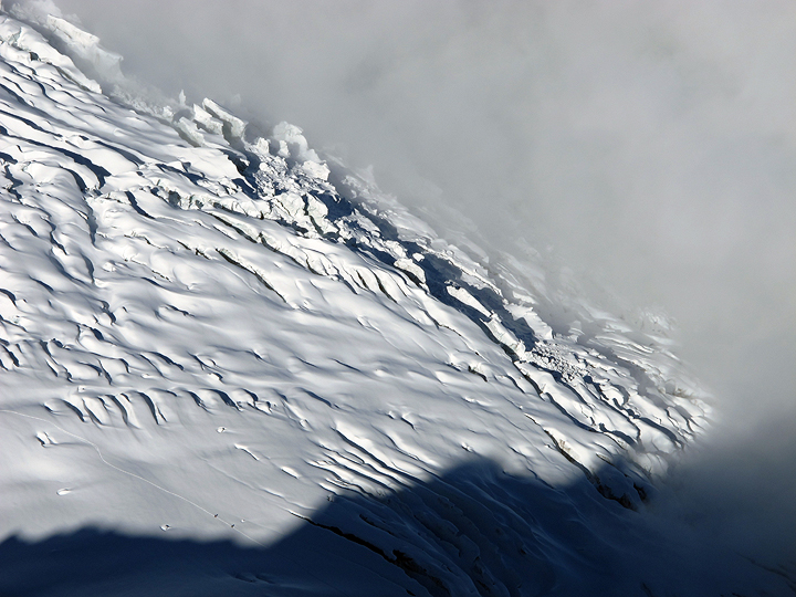 A view down into the jumbled mess of the "Jonction" above the Bossons and Taconnaz glaciers. |