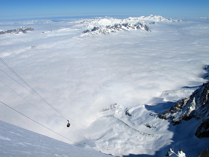 It was still snowing lightly under that valley cloud cover, who knew what was going on above? (well, we did thanks to webcams. Still it was hard to believe). |