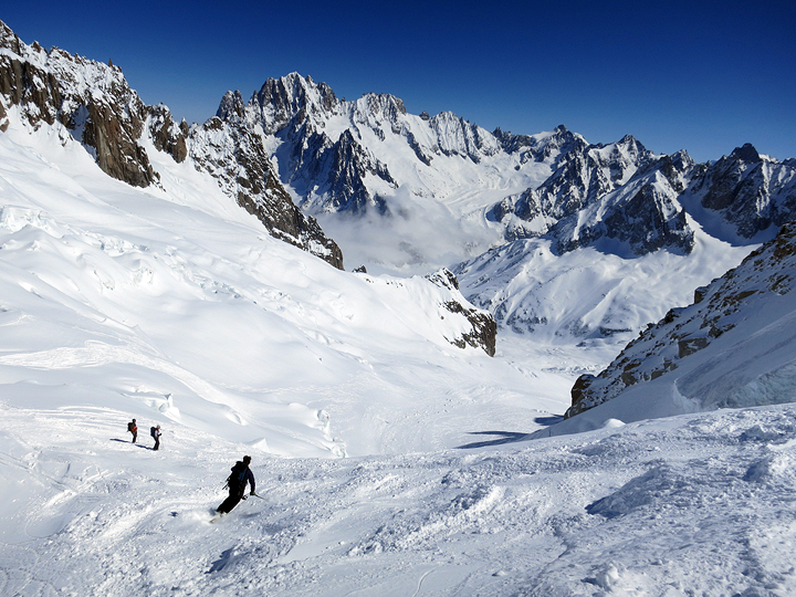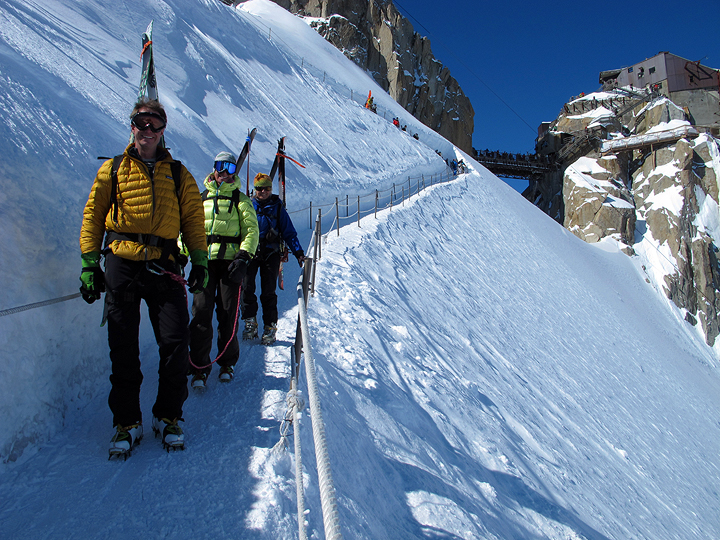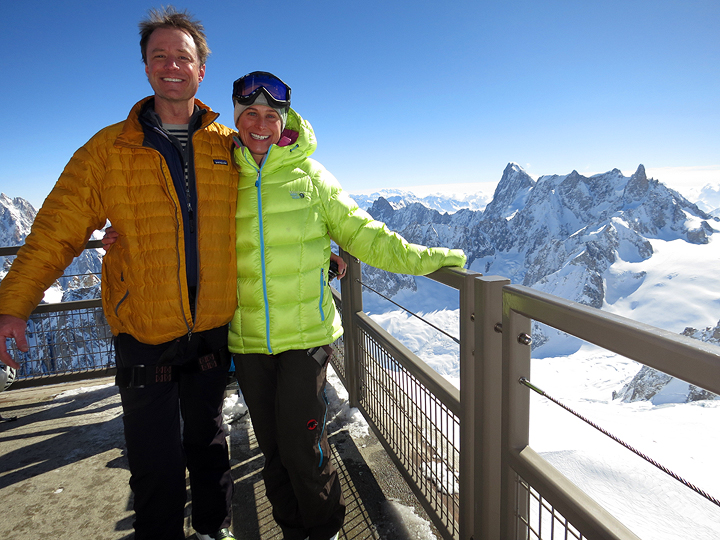 Blake and Aimee from Truckee, CA, finishing up a long ski vacation in France, had a day or two in Chamonix and wanted to get on the Vallée Blanche. The timing worked out perfectly for them to enjoy the only sunny day in a long stretch of back-to-back storms. |