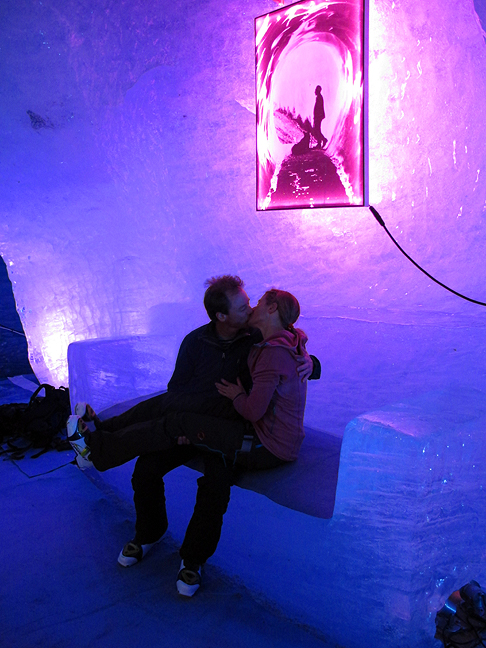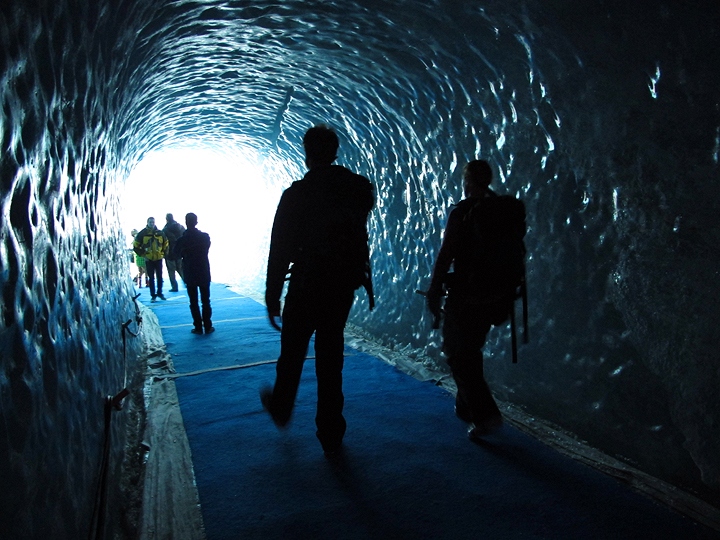 At the end of our run, a skeptical Aimee and Blake enter the Grotte de Glace! |
