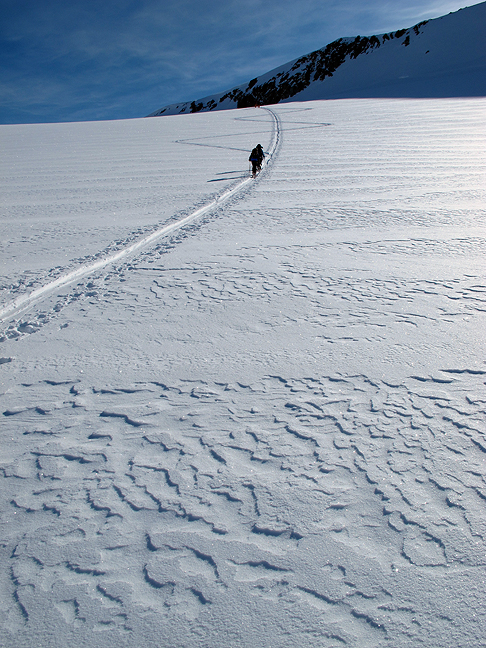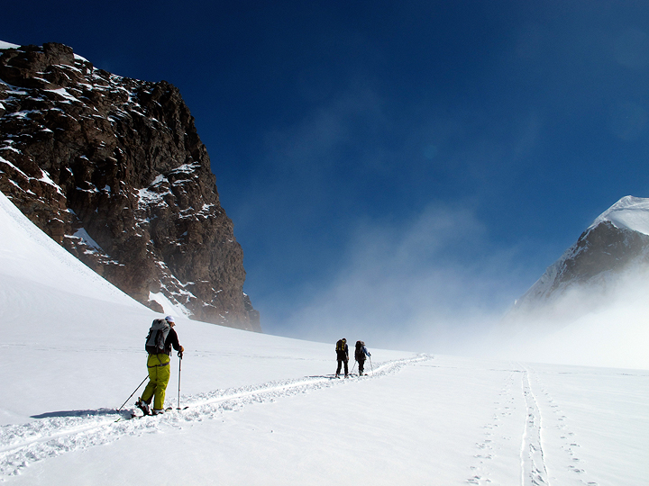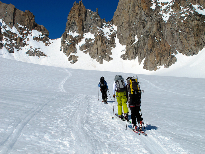 The following day was forecast to be good as well, but not the third day, so we sped up our schedule, skipped the Argentière hut and moved right along to the Trient hut. This made for a long day, but we made it! Approaching the Fenêtre de Saleina. |