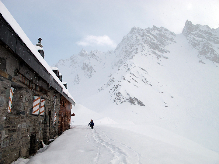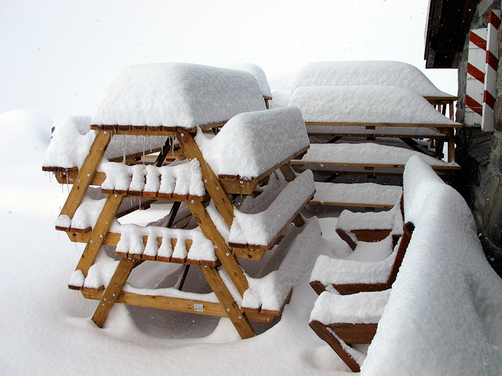 We spent the night in the Mont Fort hut, but turned back from there as well after about 50 centimeters of snow fell overnight! |
