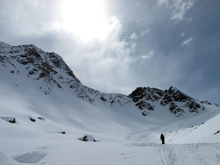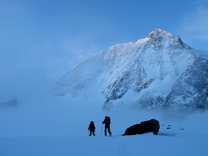 Finally a lucky break, we were able to start out for the Pigne d'Arolla under clear skies. |