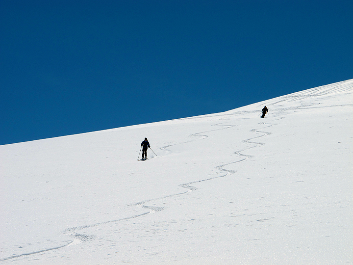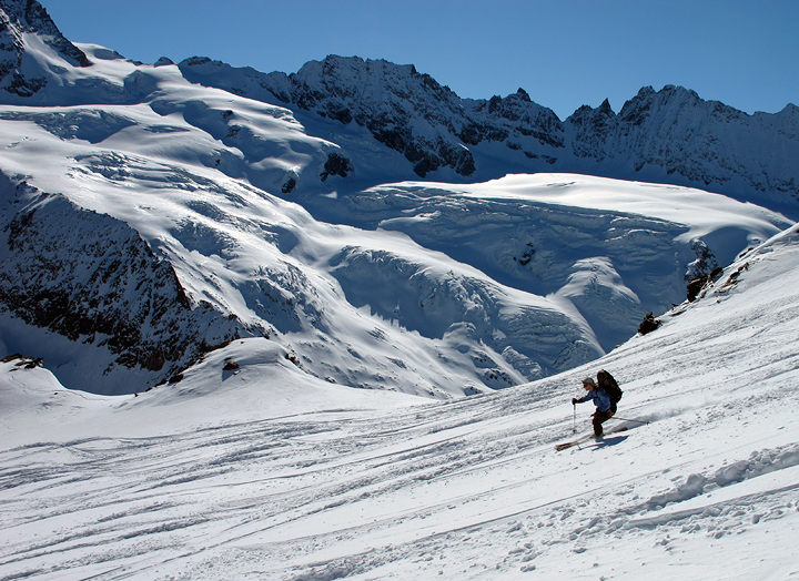 However... we delayed our final descent for another 45 minutes or so, to take in the nearby Tête de Valpelline, whose soft north-facing slopes were too good to resist, even in our weary state! Great views too. |