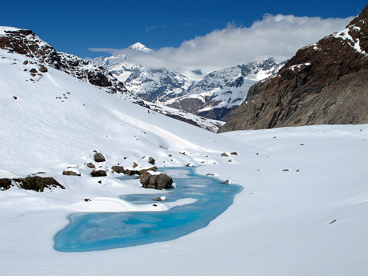 Just above the Col de Valpelline, our first up close view of the Matterhorn. |