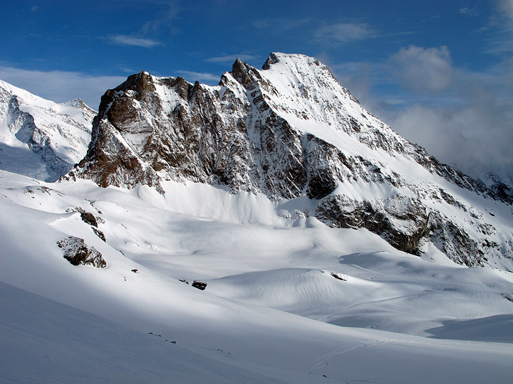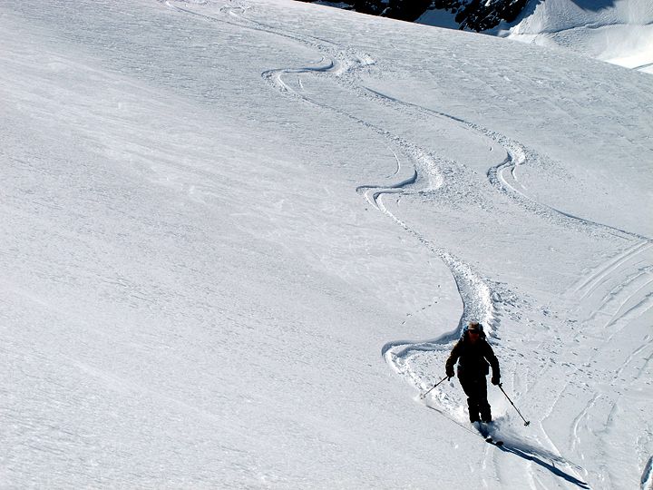 On the Schwarztor, the fresh snow is holding up well in places only those equipped with skins will get to. |