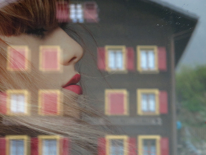 Mark gets artsy with a poster in a window (the rest of us never did figure out how ... what ... the ... ???) |