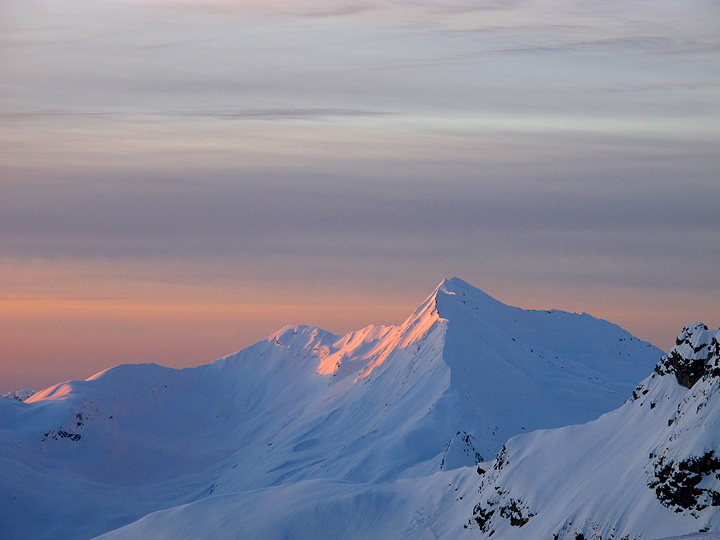 Sunrise on the Spechhorn, which lies on the Swiss-Italian border. |