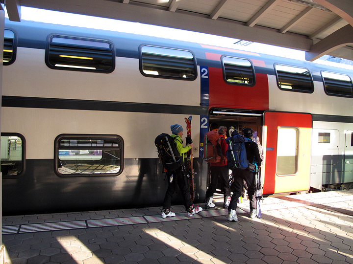 ![]() Boarding the train in Interlaken West, early on a lovely sunny Spring morning. |