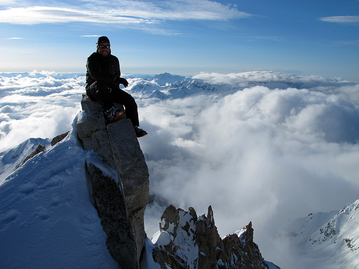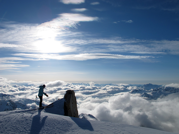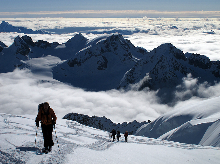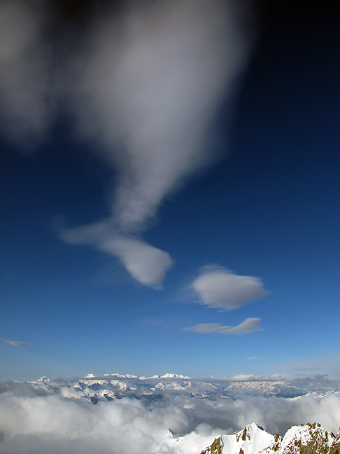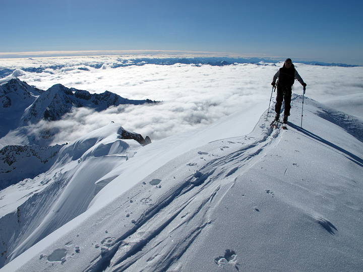 On the summit of the Grosses Wannenhorn, we look out over a sea of cloud to the islands of distant peaks. |